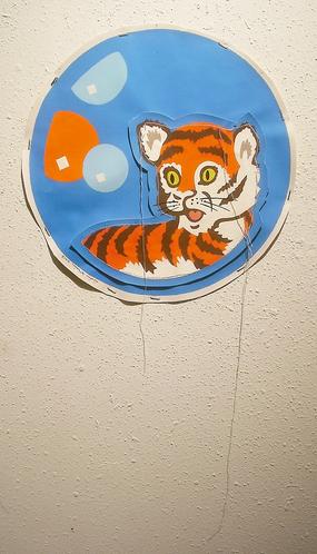 CARNIVAL GLASS. INSPIRED BY BUBBLES. COLLAGE SHOW CURATED BY DAVID McCULLOUGH IN 2013 AT THE DALLAS WHITE ROCK BATH HOUSE CULTURAL CENTER COVERING AREA OF 12' H X 20' W. THE VINTAGE VIDEO: "I'M FOREVER BLOWING BUBBLES " BY THE FLEISCHER BROTHERS. LAYERS WERE WERE USED TO INDICATE DEPTH. SOME LAYERS WERE SEWN IN FROM BEHIND SUGGESTING OTHER REALITIES CREEPING IN FROM OTHER PORTALS INTO THIS DIMENSION. I USED ACETATE AS THE WINDOW INTO THAT WORMHOLE. I CHOSE TO REINTERPRET THE PHYSICS OF THE BUBBLE AS FLAT OPAQUE OBJECTS INSTEAD OF 3 DIMENSIONAL, TRANSLUCENT & REFLECTIVE.